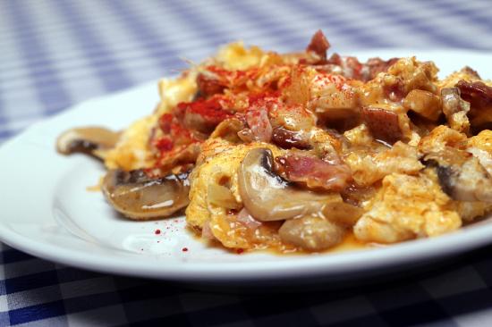 Tojásrántotta gazdagon(3 tojás) szalonna,hagyma,sonka,kolbász,gomba3110 Ft